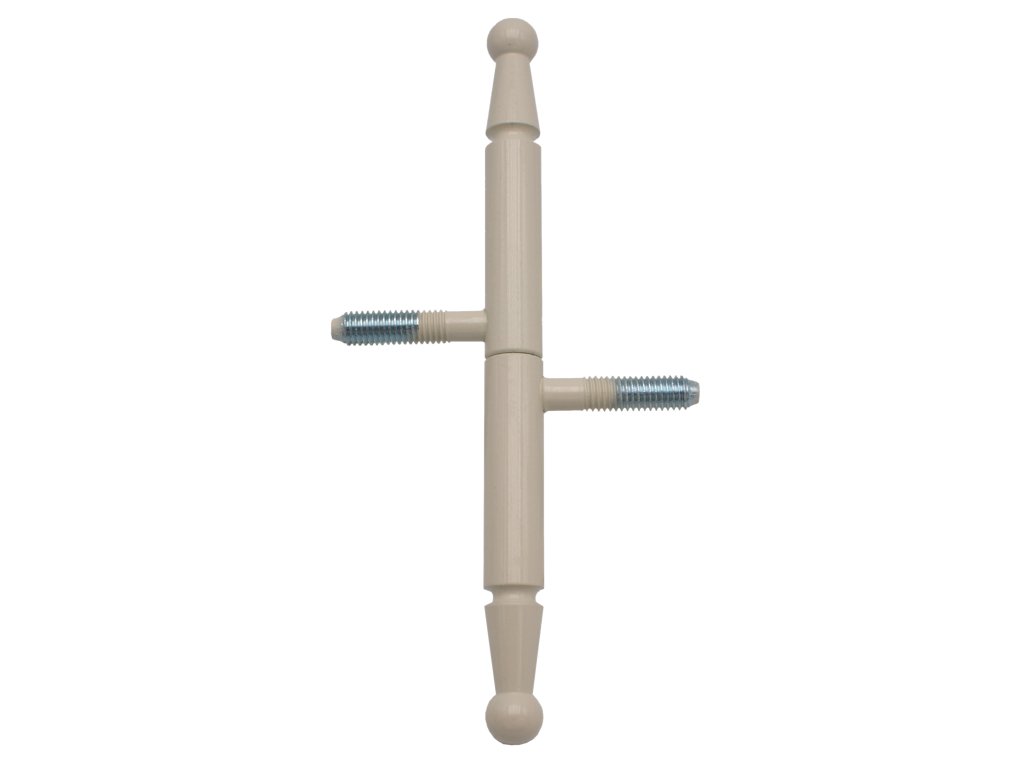 Scharnier mit dekorativem Stiftende. Es wird als tragendes Scharnier für Fensterflügel verwendet. Derselbe Typ kann verwendet werden, um Fenster- und Türscharniere aufeinander abzustimmen (Türscharnier siehe verwandte Produkte).