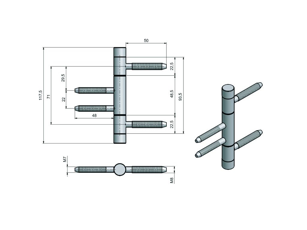 A hinge in a modern design, with a flat pin end that perfectly complements the overall look of doors with a flat handle. A three-piece hinge for wooden doors and a door frame. Its main advantage is its very strong and stable mounting. Suitable for doors with a door closer.
